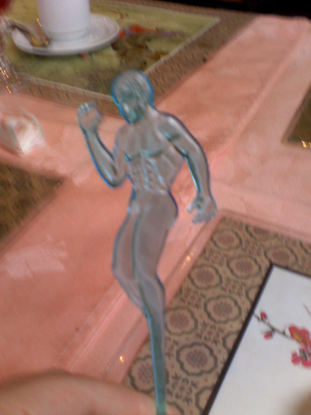 I got up from the table and went downstairs to use the bathroom. I looked around for any other signs of clandestine night life – other than the naked plastic man flexing in my drink.