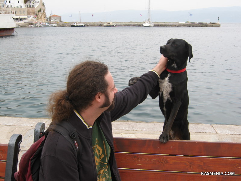 After stopping at an outdoor coffee shop for a Greek coffee and to make friends with yet another dog, we went off for a much longer walk along the edge of the island until we reached the next town.