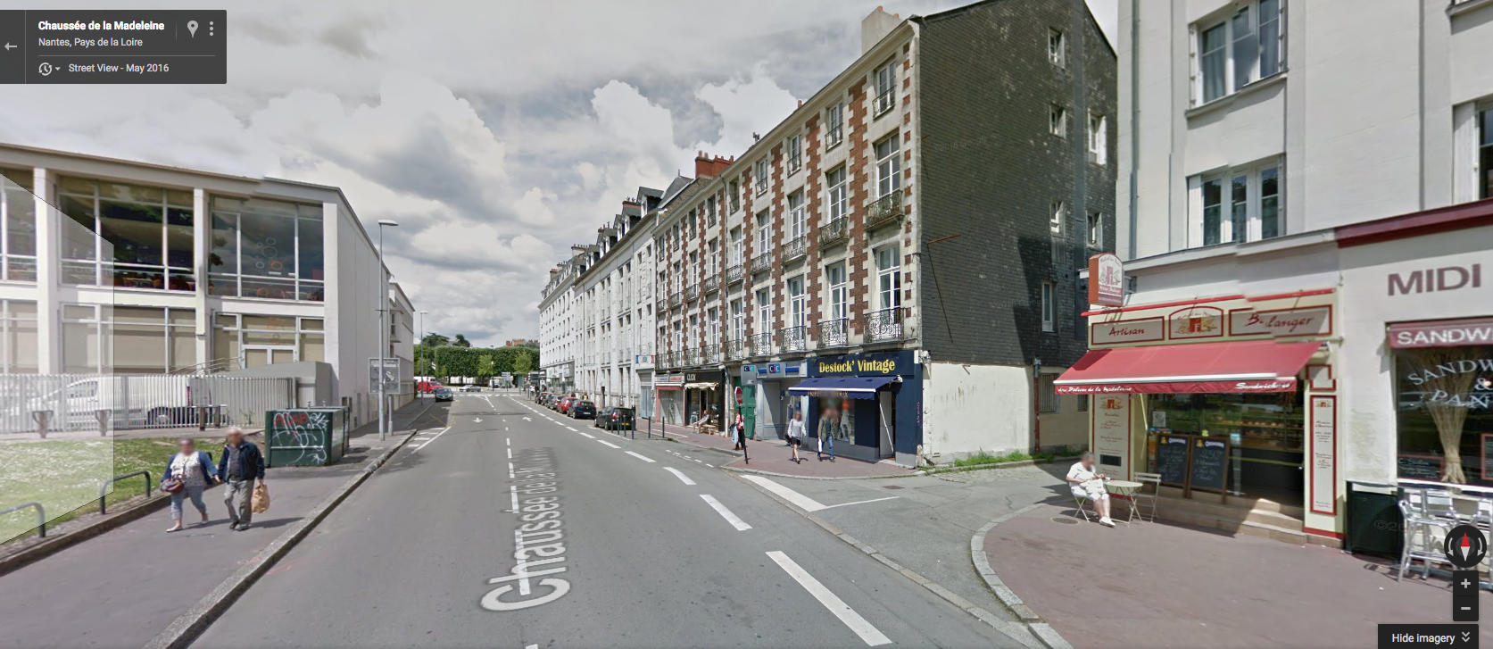 Above is an example of people trying to scare you. This is not a war zone. This is not a video of Muslims driving “Native French from no-go zones.” No go zones are bullshit. It is a video of people being stupid and rioting, which happens all over the world for a variety of reasons. Looking up the address of the shop behind the rioters, I had the address in Nantes and was looking at the same exact spot on Google street view in a matter of seconds.