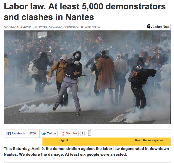 The demonstration has a hashtag on Twitter: #manif9avril so you can go look at all the scary tweets and photos of white people walking around demonstrating. Or click on the English translations of the news articles I’ve provided for you. You’re welcome.