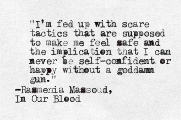 In Our Blood is a short story I wrote as a contribution to the project. It’s fiction, but inspired by a very real dilemma I experienced years ago when I had to decide if I was afraid enough to purchase a firearm, or brave enough to live by my principles and continue on without a gun.